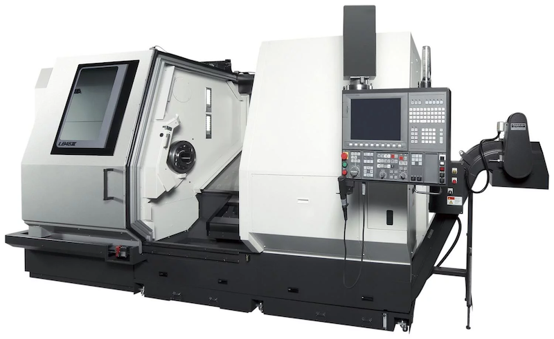 Our LB45III single-saddle horizontal lathe series offers speed, accuracy, and power, along with rotary tooling and long bed capacities. The powerful spindle and drive motor with fast-indexing NC turret mean high productivity for fast and heavy-duty turning. Add the optional M (milling) function for complete multitasking, which includes turning, drilling, milling, and tapping.
